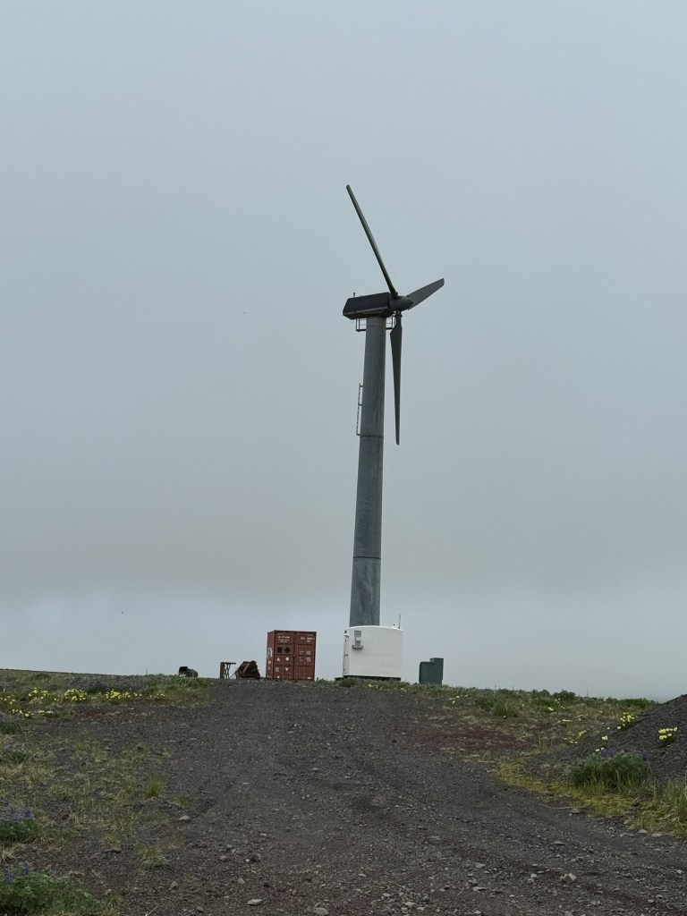 First stop was the lone wind turbine on the island. Some years ago a crew came out and installed it with hopes it would supply the electricity for the entire island. Shortly after installation a wind storm struck and the islanders could see the blades spinning so fast that it burned itself out. Another crew came out to fix the wind turbine and another storm followed. The windmill has been sitting there ever since, not functioning. Good thing they kept their diesel generator.