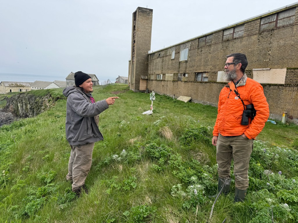 Our conversation shifted to the Sealing Plant, and how earlier in our tour we had met two summer employees of U.S. Fish and Wildlife there to count and monitor species on the island. These interns actually lived upstairs at the old plant. I commented that I thought that would be a terrible place to live. In unison, Lawrence, Curtis and Ruby looked and me and asked me why I thought that. “I think the sealing plant must haunted”, I replied. They all nodded, and again, asked me why I thought so? “Because of the millions of poor seals that have been slaughtered and cut up there”, I replied. Aghast and again in unison they shouted, “No!! It’s not the seals, it is all of our ancestors that have been killed while being slaves at the plant.”