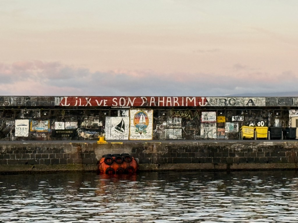 A tradition in Horta is for boats to paint their name, crew members and some rendition of their boat.