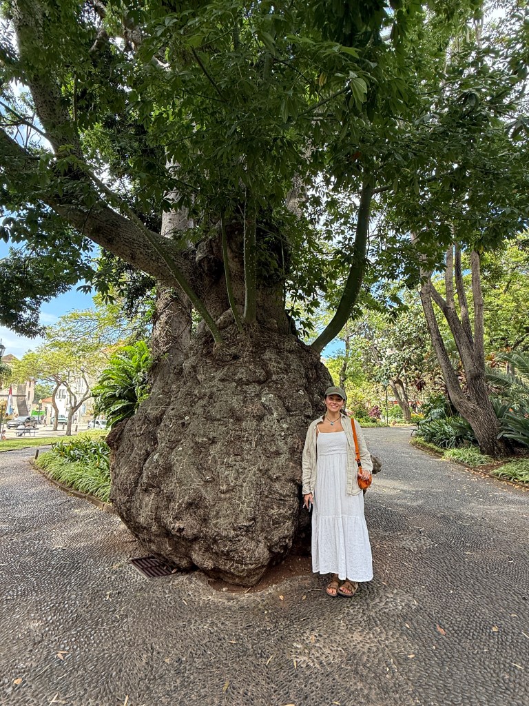 While Madeira deforested herself long ago, they still have some unique and beautiful trees. Above: Ingrid stands infront of the “cotton tree of Madeira” otherwise known as the Silk Floss Tree. These trees are known for their large, thorny trunks, and the fluffy, cotton-like fibers produced in their seed pods.