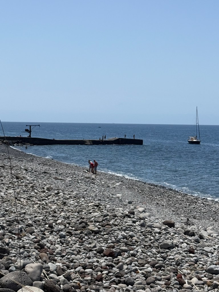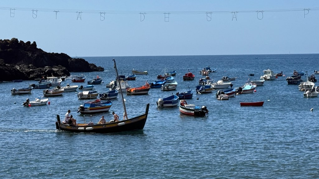 When Randall and I pulled into Maderia, we did not quite get the warm welcome that Columbus or the Pope received. After six days at sea, we pulled into the main harbor Marina do Funchal. A harbor-master type unceremoniously gave us the stink-eye and asked us in his best Portuguese what exactly we thought we were doing pulling into the (admittedly small) marina. “We made a reservation” Randall answered. To which the man answered in his best English that they are full for the summer and they do not have our reservation. “We made it on your website” offered Randall. To which the man answered that the website does not work, has never worked so we best go out, as in right now, and anchor in the bay or try the other marina 17 miles up the coast. Alrightythen. As my daughter and her boyfriend were waiting for us on shore and watched our aborted entry in some dismay and confusion, we anchored in the bay, pulled out the dingy and inflated it and made landfall.