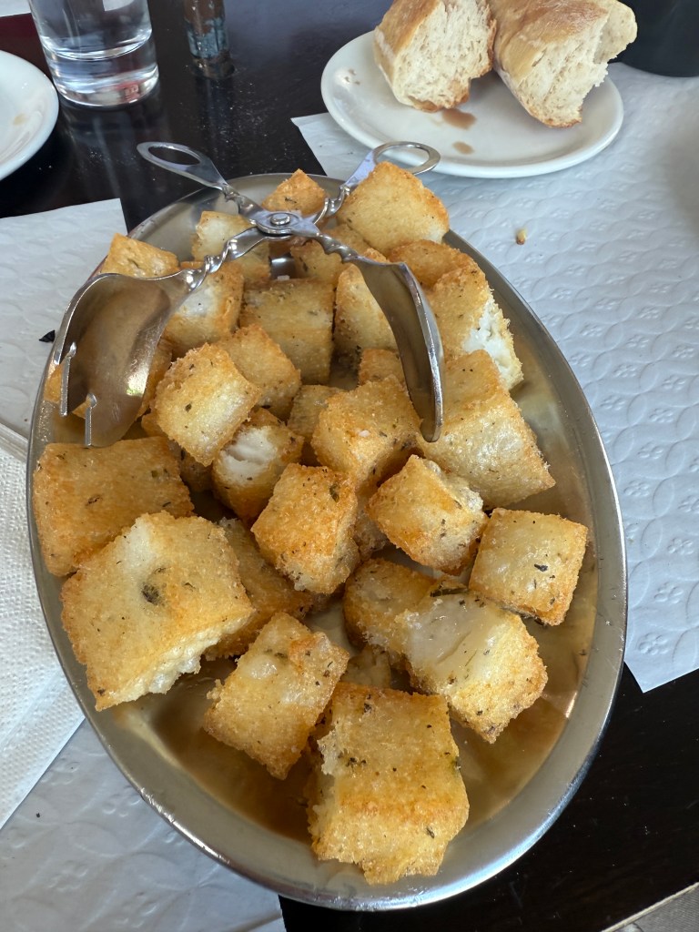Our favorite dish here is Milho Frito – fried cornmeal. It is a typical Madeira side dish made of cornmeal, finely sliced collard greens, water, garlic and olive oil that is cooked slowly. It is then cut into cubes and fried.