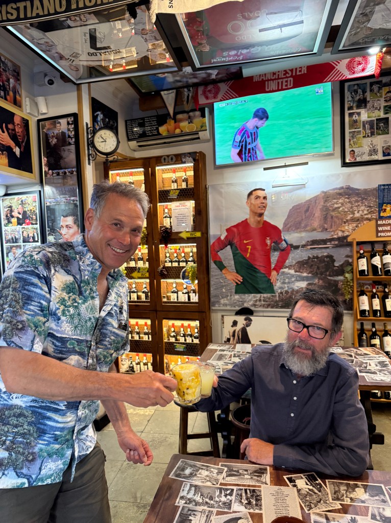 Some variation of the local lore is that if you drink one Poncha you will be happy, drink two and you will be wise, and if you drink three, you will be speaking Portuguese. Let’s just say that Randall’s accent is indistinguishable from a local. Above Randall’s shoulder is the soccer star “Ronaldo”. Born in Funchal, he is widely regarded as one of the greatest players of all time.