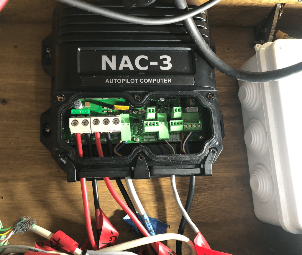 On this morning I went through the same troubleshooting procedures (including swapping in a new rudder sensor) and came to the same repair conclusion: new auto. New auto installed from spares and we were underway in the early afternoon.