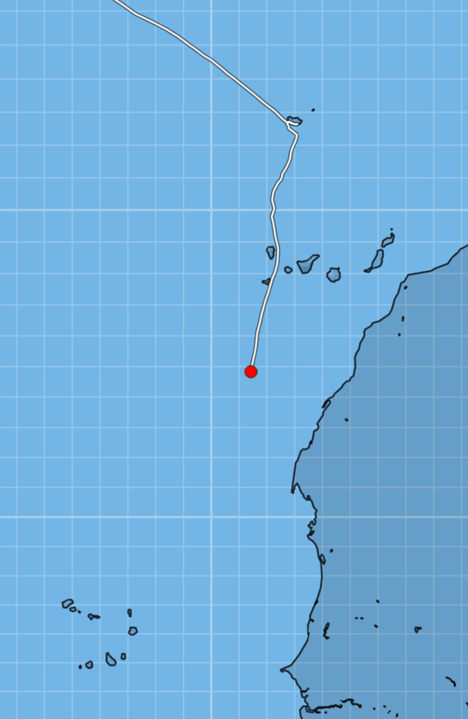 We are but half a day’s sail to the south of the Canaries and how oddly abandoned this area of ocean feels. Only four flying fish seen. By morning, Mo’s decks scooped up only two, to their utter, open mouthed regret. Petrel sightings, rare. No dolphins seen since the first day.