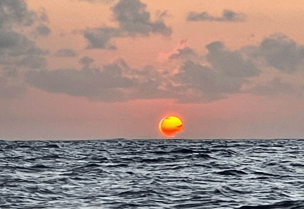 But still, in my experience, the band is typically rather narrow and clearly defined. Steady wind to light and variable to steady wind. Initially I had thought we had crossed into the southern trades a few blog posts back when I described our rough passage through a large squall complex. After we punched through this, winds went due S and stayed there, even had a fresh dry sense to them.