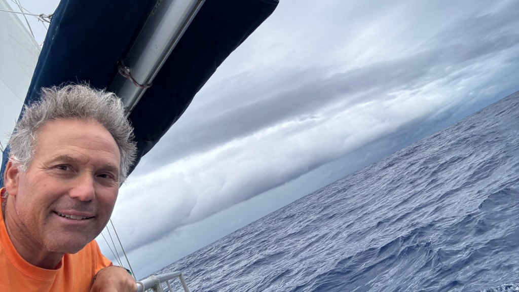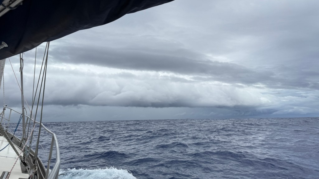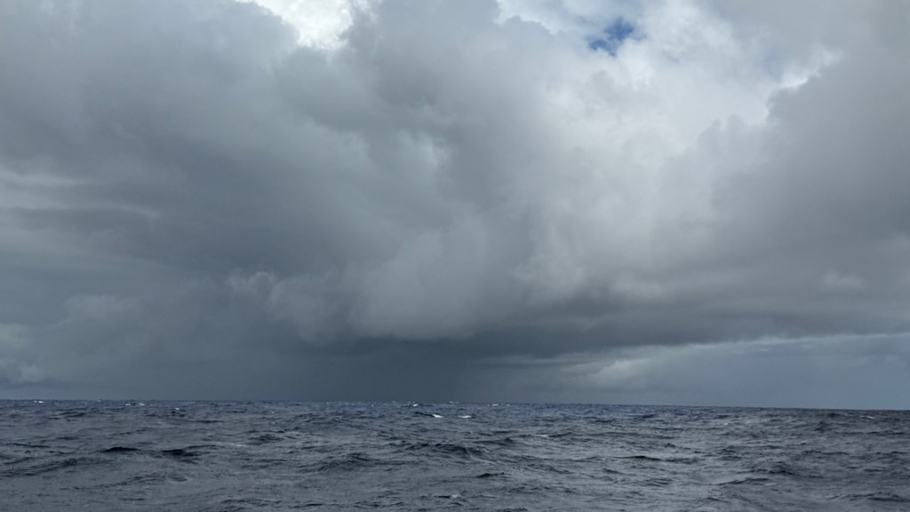Above and Below: While the orcas said goodby, the crazy cloud cover was just saying “Hello.” While amazing to look at, these clouds give us sailors headaches because they are huge squall fields that create constantly changing wind conditions.