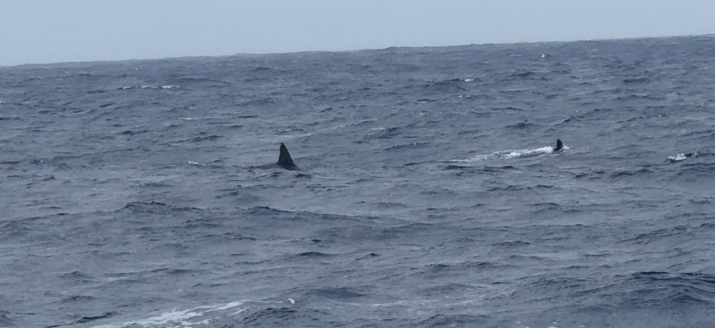 Sightings of Orcas in equatorial waters are not widespread and there is not much research on what exactly they are doing here (keeping an eye on Randall?) https://aquariodeubatuba.com.br/wp-content/uploads/2023/09/Movements-and-social-behavior-of-killer-whales-Orcinus-orca-off-the-Brazilian-coast.pdf. I can only guess that, like us, the orcas are heading south. The largest population of orcas resides in the waters surrounding Antarctica. It is estimated that about half of the world’s orca population, approximately 25,000 individuals, live in this region.