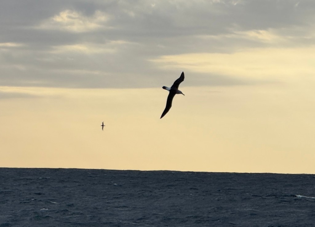 Above: Super excited to see our first Albatross of the trip! Several species of albatross can be found off the coast of Brazil, but the Atlantic Yellow-nosed Albatross is one of the most common. Other species like the Light-mantled Albatross and White-capped Albatross can also be found, though often as seasonal visitors or with fewer confirmed sightings. I am thinking that the picture I took is of a White Capped, as they tend to be more shy, and this one would not come close to us.