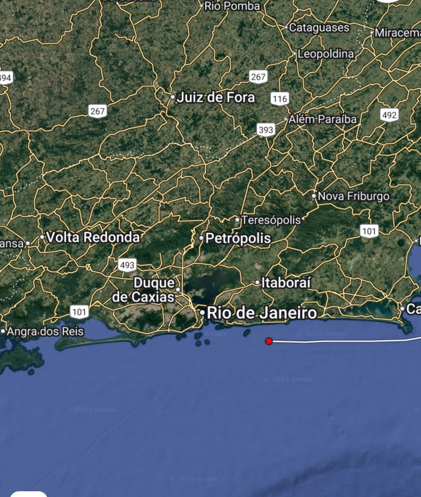 Above: The primary reason for so much sea traffic is that we find ourselves skirting the Lula offshore oil field managed by Petrobas along with the BP Group. This is one of Brazil’s largest oil and gas projects (perfect!!), with estimated reserves of 8.3 billion barrels of oil and a daily production of around 1 million barrels. And they most certainly will not stop production for the likes of us!