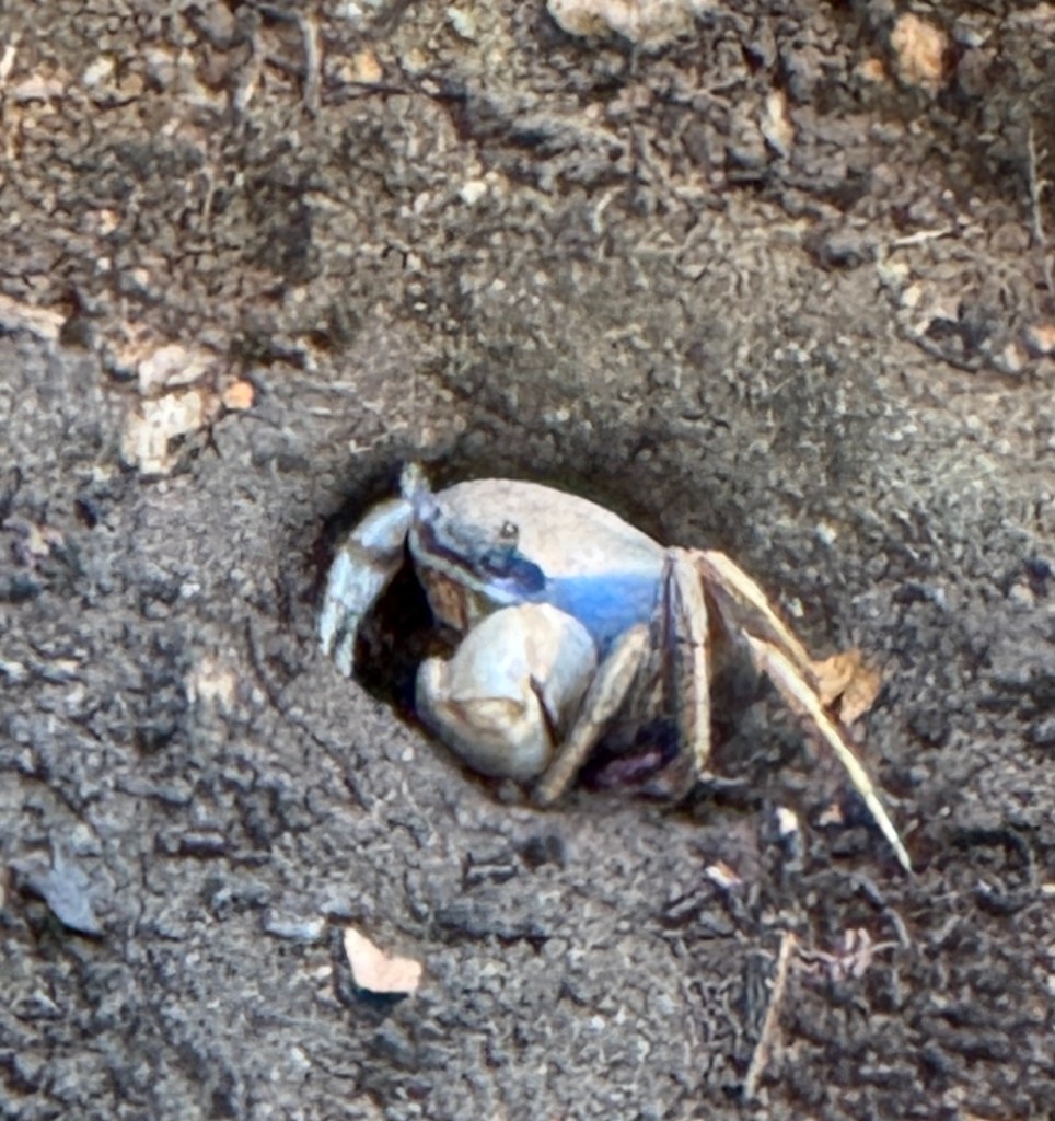 Above is blue land crab found in tropical and subtropical regions along the Atlantic coast from Florida to Brazil. While they live on land, females must return to the ocean to release their eggs during spawning season which coincides with heavy rains. Every crab that we saw seemed to have one dominant, oversized claw. Give me a Dungeness any day!