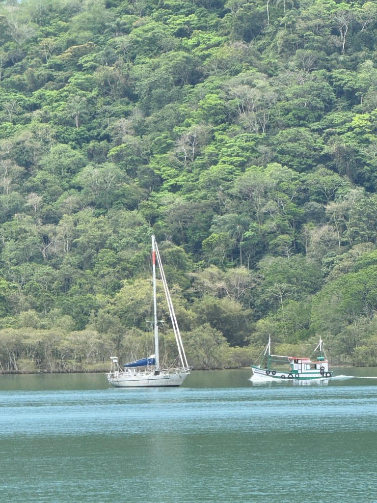 Above: On our way to Ilha Grande, this area directly south of Rio seemed to attract a plethora of smaller, traditional wooden fishing boats. They were all quite friendly (I am just happy when they wave to us), but neither Randall nor I could tell what they were actually doing, which to the untrained eye was nothing. But they sure looked darn good doing that.