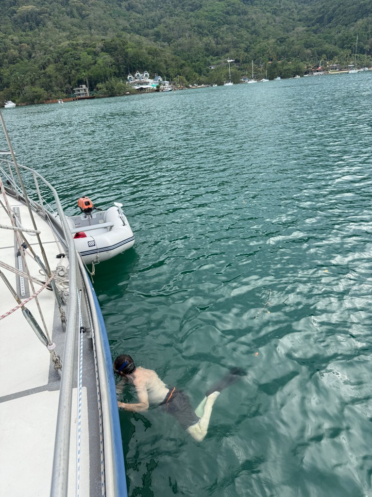 Above: While Randall had the bottom of Mōli scrubbed in Rio, he didn’t quite trust the job and wanted to see for himself it the marine growth was sufficiently removed. It was, but still a good time for a swim.