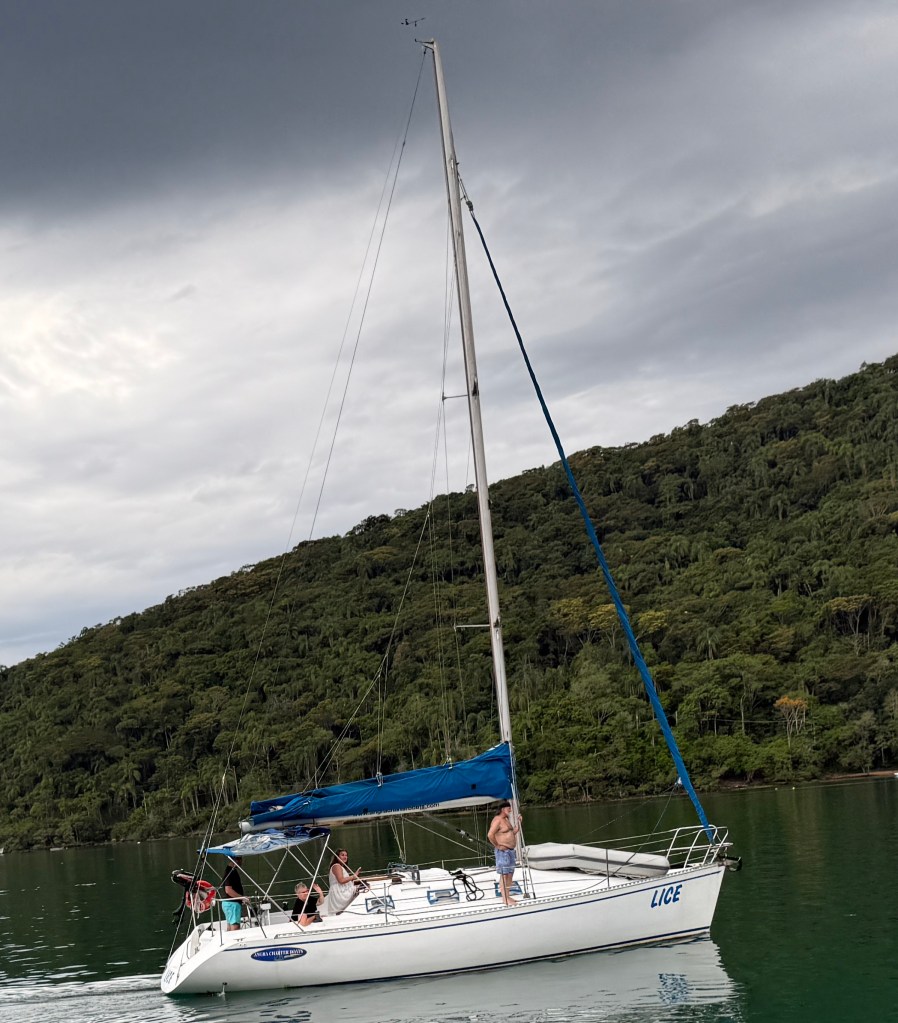 Above: As we were getting ready to slip lines, this boat, perhaps aptly named “Lice” passed us by. As I said, they do have a sense of humor here, as “Lice” is, well Lice in English, and in Portuguese it would be Piolho (singular) or Piolhos (plural). I have to say, in all seriousness, that it looks like an otherwise lovely family aboard. Must be quite a dad!