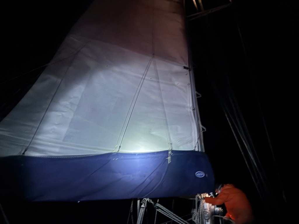 Above: Not an easy night as we begin to head into the wind with some decent speed. The wind waves are in the 4 to 5 foot range. I take my first Dramamine and do not have a great night as we bounce around.