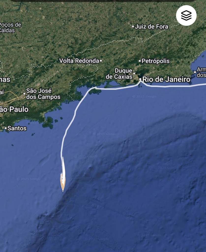 Yes, we would like to be heading south and not this far east, but this is the best we can do for now. Good to get off shore as we pass São Paulo. See you in a bit!