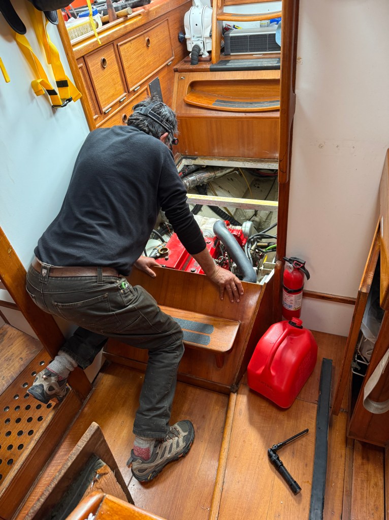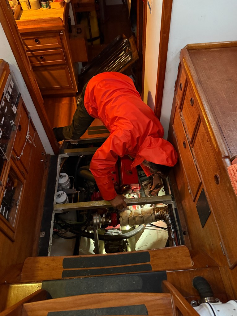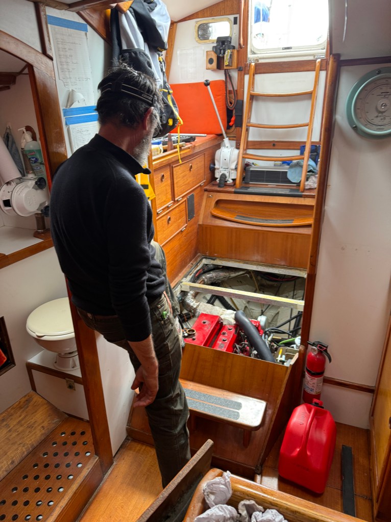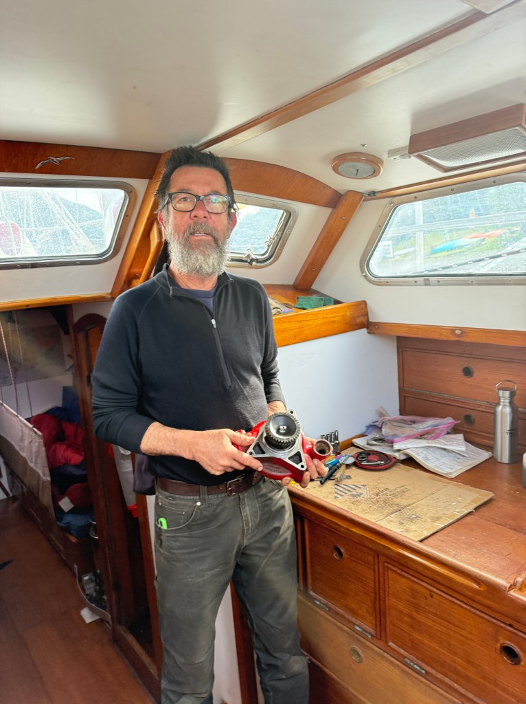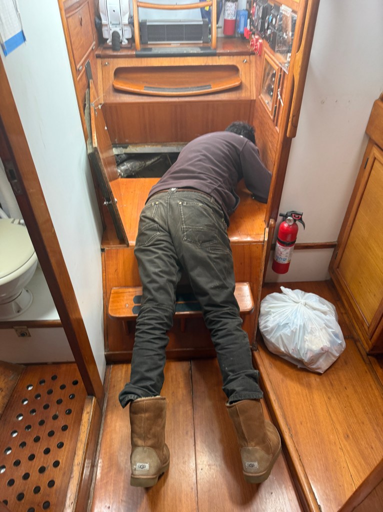 It did not take Randall long to rummage under my bunk to search for the spare water pump.