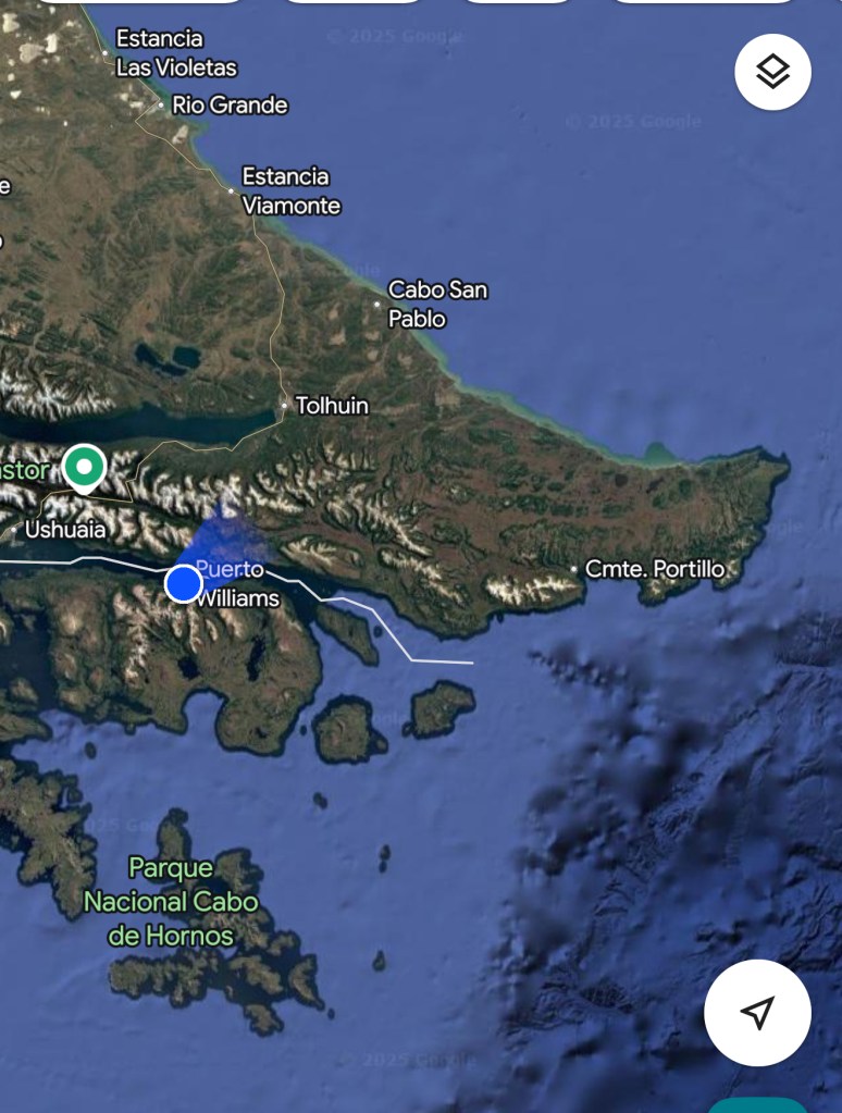 It has been a rough few days. But we had a textbook four day sail from the Falklands to Puerto Williams, Chile. But we hit 30 knot headwinds as soon as we entered the the Beagle Channel which forms part of the Chile-Argentina border in the Tierra del Fuego archipelago.